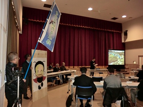 ◎とっこ館西側の舌喰池に5年前から創られました舌喰池蛍水路の実績発表会が塩田自治センター大ホールで開催されました。発表は4自治会・3団体組織が発表し、蛍水路を創りました手塚自治会は2番目の発表でした。第1期・第2期・第3期と活動し約120mの水路・3回の蛍学習会・水路の告知版の設置と活動内容が報告され、その様子のDVDも放映され参加されて方々に好評でした。
