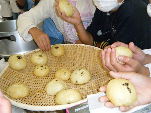 ◎本日正午から上田市内の清明小学校5年生の皆さん44名の皆さんが、校外学習でとっこ館へ来館されました。研修の間でお昼を食べられてから、体験の間において地元のおやき作りの名人の女性3人の方より手ほどきをうけおやき作りに挑戦しました。粉から練り上げ具をいれせいろで蒸しあげました。できたおやきはそれは美味しそうな出来栄えでありました。その後、語りの間で西塩田地区振興会が製作しました塩田のため池紹介のDVDを視聴しました。みんな楽しそうでした。塩田のため池紹介DVDは来館されましたら開館時間内でしたらいつでも視聴できます。休館日毎週水曜日 開館時間午前9時~午後5時 夜間も会議等での使用でお使いいただけます。事前予約
