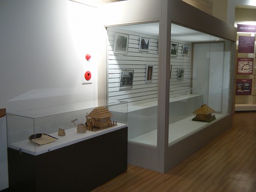 ため池の土樋の現物を展示しております。生島足島神社の中の池にあった土樋を移築しました。