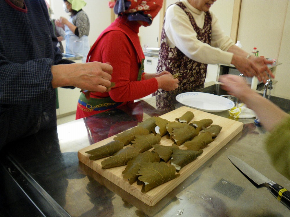 本日とっこ館体験の間において午前9時30分より柏餅・ちまきづくり教室が開催され、定員一杯の25名の皆さんが美味しい柏餅・ちまきづくりに取り組んでいました。