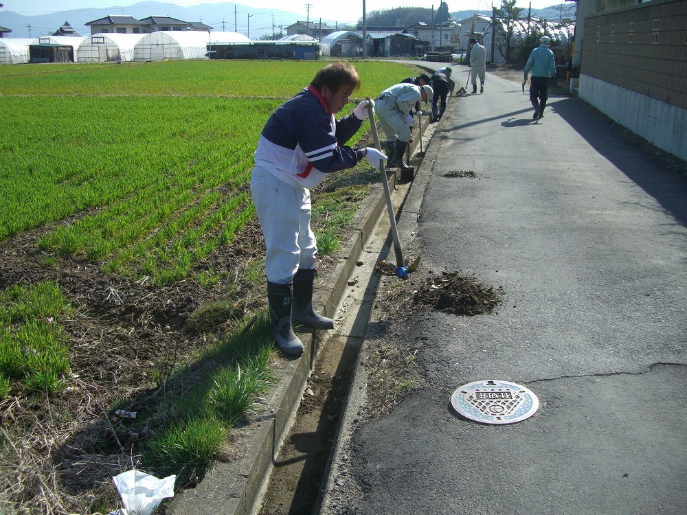 本日地元の農家の皆さんによる用排水路・農道の清掃・整備が行われました。水路は泥上げ・農道は敷き砂利をし、泥上げの泥は池のえん堤へ運び植栽の基盤といたします。作業中にはタンポポが咲いていました。