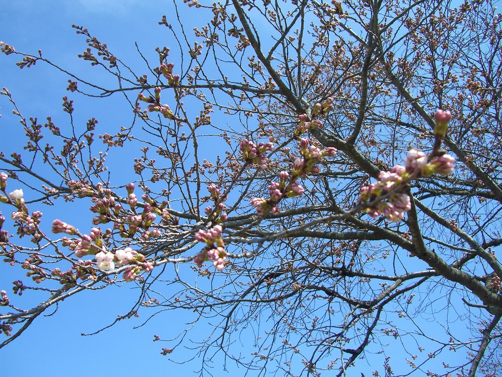 ⑤とっこ館北側の桜です。寒いのでまだつぼみで二分咲きです。20日ごろ全開です。