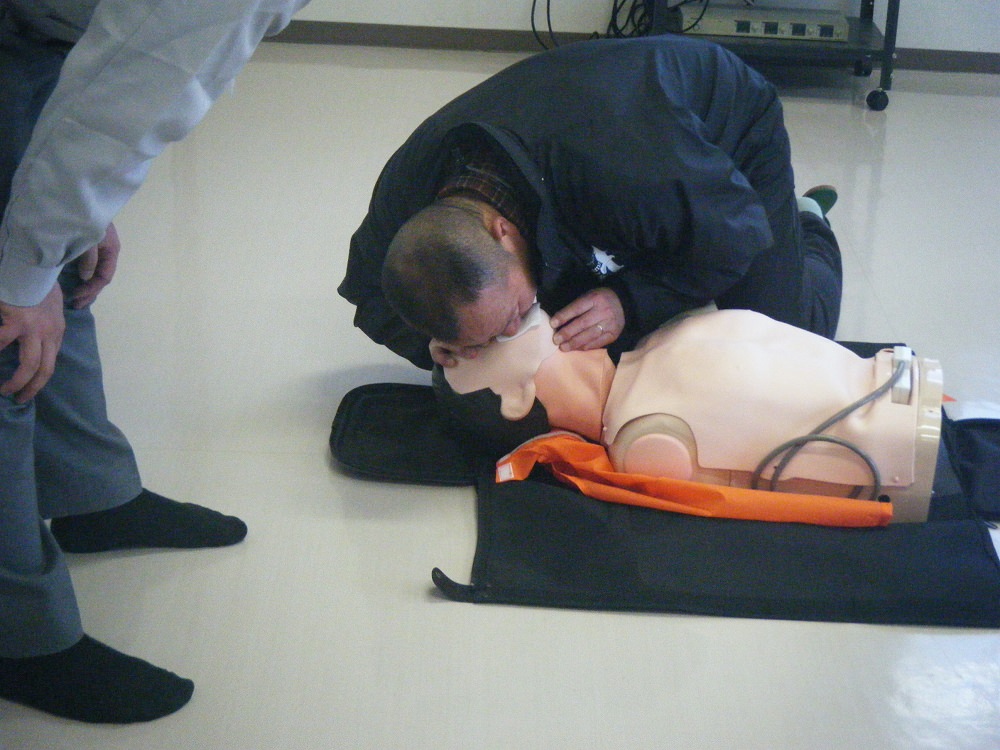防災訓練は、南部消防署から来て頂いてAEDの使い方や救急法の訓練をして頂きました。