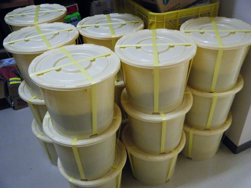 今回は、最後に行われた4月13日の味噌作り体験の熟成された味噌が、武田味噌醸造さんから搬入されました。