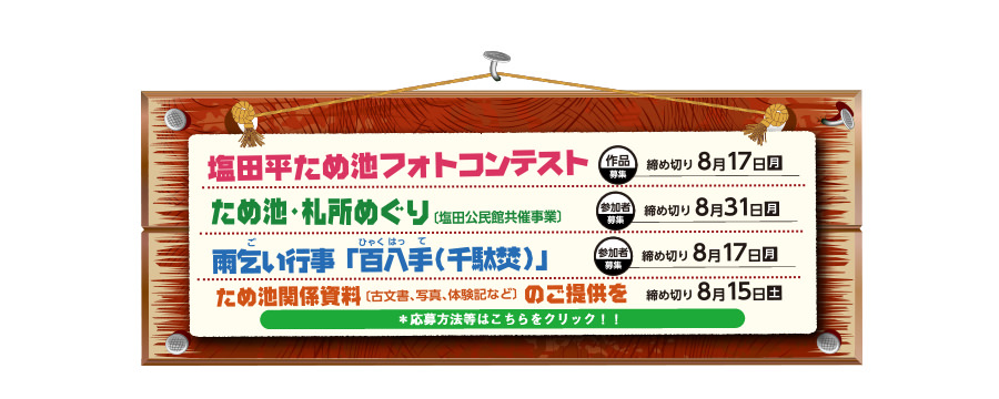 第3回 塩田平 ため池フェスティバルが近づいてまいりました。